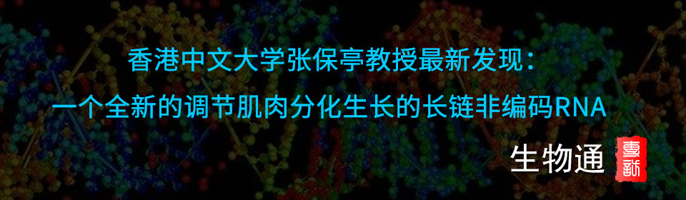 生物通首頁 >  中國科學人 > 香港中文大學張保亭教授最新發現:一個全新的調節肌肉分化生長的長鏈非編碼RNA