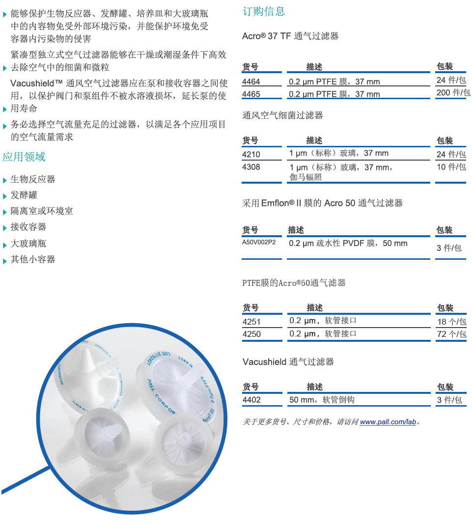 關于更多部件編號、尺寸和價格,請訪問 www.pall.com/lab。