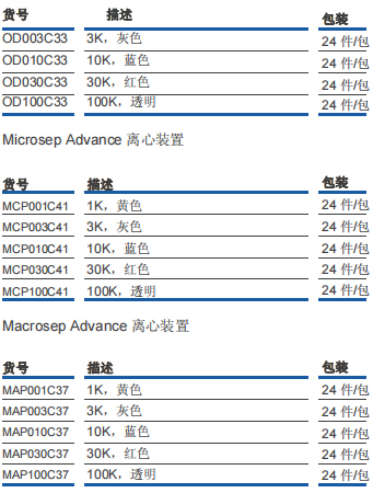 Nanosep 和 Microsep 濃度選擇指南可為蛋白質樣品濃縮提供建議。裝置中的液體總體積決定最終截留物的體積。在插入裝置中添加緩沖液后,可以設置完全停止體積,進而選擇濃縮系數。