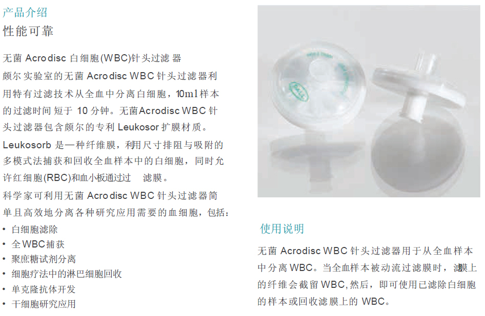 • 對于細胞冷凍保存,可使用 DMSO 專用的 Acrodisc 針頭式過濾器