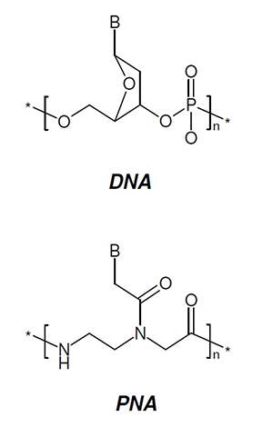 電荷中性骨架允許PNA通過Watson-Crick氫鍵與DNA或RNA結合,其結合親和力明顯高于帶負電荷的DNA寡聚體 [3]。