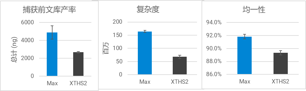 “總體而言,我們發現該試劑盒簡便易用,尤其是改進了酶切片段化、預混試劑,并在第一次文庫擴增后無需定量和歸一化。SureSelect Max 手動工作流程比 SureSelect XT HS2 試劑盒快 1–2 小時 ,我們發現文庫產量顯著提高(捕獲前提高 1.5 倍,捕獲后提高 5 倍)!”