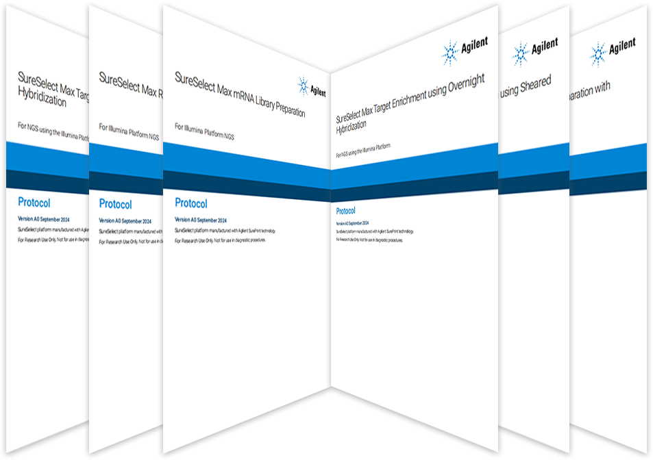 四種文庫制備方案(DNA酶切、DNA機械打斷、RNA、mRNA)以及快速雜交和過夜雜交工作流程的相關資料現在可通過以下鏈接下載。這兩種雜交方案與 SureSelect Max DNA 和 RNA 文庫制備試劑盒兼容。