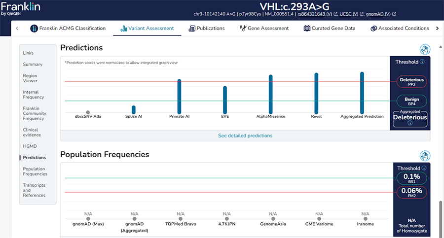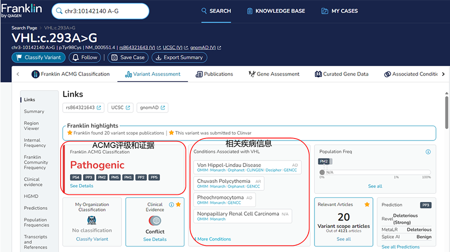 ● 一鍵式訪問,提升效率: 一個界面即可查詢Franklin和HGMD詳盡數據