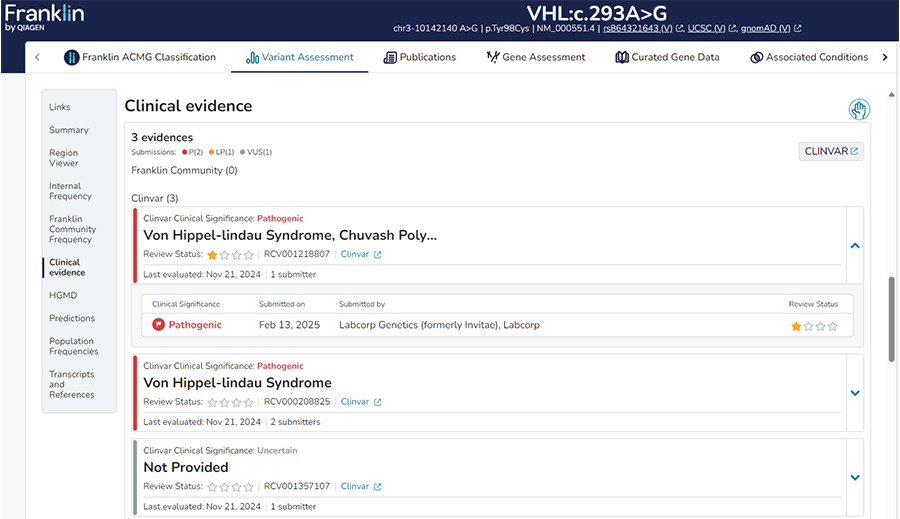 結果展示Franklin community和ClinVar已報道案例。