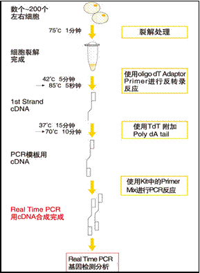 創(chuàng)新點:從少數(shù)細(xì)胞(數(shù)個~200個左右)起始,不需要進(jìn)行RNA和cDNA的精制,即可直接進(jìn)行高效率的cDNA擴增或?qū)讉基因進(jìn)行Real Time PCR解析。