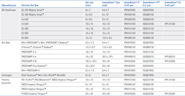 表3. Immobilon® PVDF預切轉(zhuǎn)印膜和匹配的電泳系統(tǒng)。