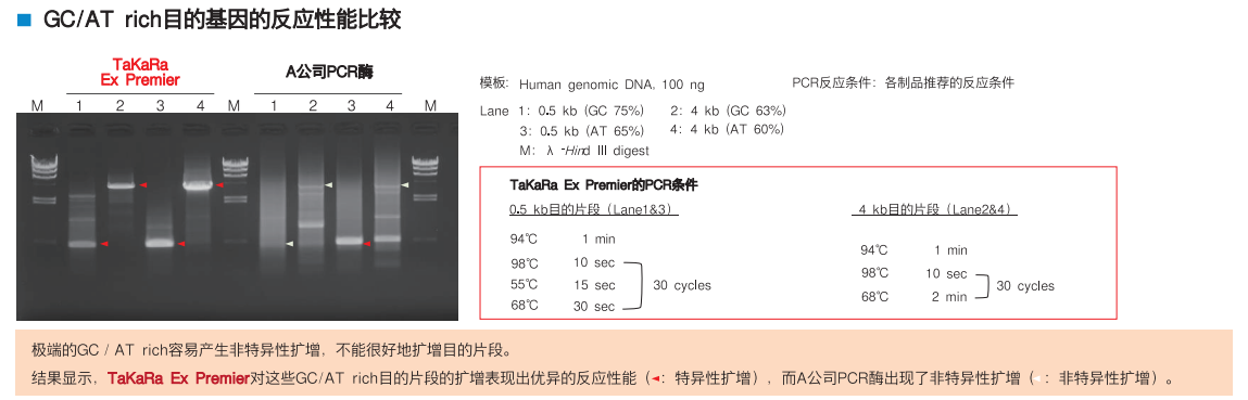 TaKaRa Ex Premier™是集高成功率、高保真性、高收量和快速擴(kuò)增于一體的PCR酶,即使是粗提樣品、GC/AT rich、長鏈(~30kb)等難擴(kuò)增的模板依然能夠從容應(yīng)對(duì),可實(shí)現(xiàn)高保真、高成功率的擴(kuò)增,可謂一個(gè)對(duì)策解決您的多種需求,助力您的PCR實(shí)驗(yàn)一站成功。