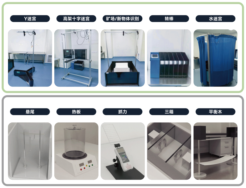 賽業生物大小鼠神經行為學平臺配備專屬水迷宮、Y迷宮、轉棒、曠場、高架十字迷宮等多類型實驗儀器設備,可開展學習記憶類、運動平衡類、精神情緒類和社會群體類等多種行為學實驗服務。