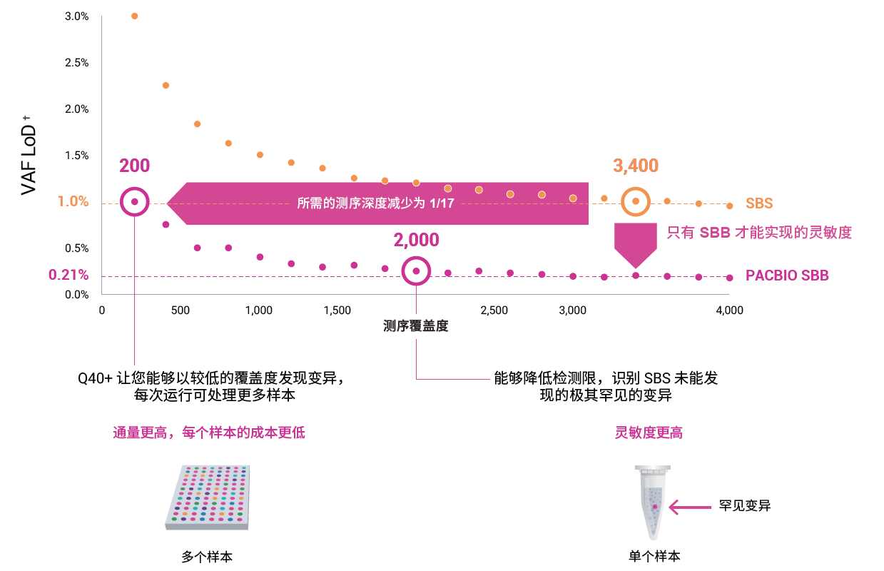 與SBS測序儀相比,對測序覆蓋深度的要求更低。可以連續讀取均聚物,通過難以測序區域。重復率低,無標簽跳躍,無需過度測序和復雜的糾錯方法,Q40+的準確度能夠以較低的讀取深度提供高質量的結果,同時減少時間和成本。對唯一分子標識符(UMIs)的需求減少,降低了工作流程的復雜性和成本。