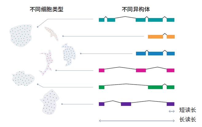 單細胞RNA測序(scRNA-seq) 能夠表征源自復雜組織的單個細胞之間的基因表達差異,提供更高分辨率的轉錄組信息。大多數單細胞實驗都是使用短讀長完成的,由于文庫必須片段化,所以短讀長測序只能捕獲分子的各端,測序數據只能在基因水平上提供表達信息,缺少可能對疾病或生物功能十分關鍵的重要異構體多樣性信息。而其他長讀長技術識別唯一分子標簽 (UMI) 和細胞條形碼 (CBC) 的準確率不夠。HiFi測序技術的出現不僅能對全長RNA異構體進行測序,還能識別單細胞條形碼和UMI信息,在單細胞水平上揭示異構體多樣性,讓我們以全新方式深入了解單細胞生物學。