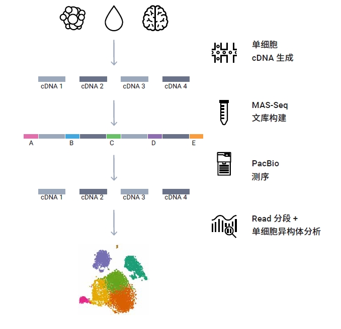 PacBio推出的MAS-Seq for 10x Single Cell 3'試劑盒提供了一種端到端解決方案,可用于從樣品制備到生物信息學分析的單細胞RNA異構體測序。MAS-Seq文庫與常規單細胞Iso-Seq文庫相比,可使通量提高16倍。