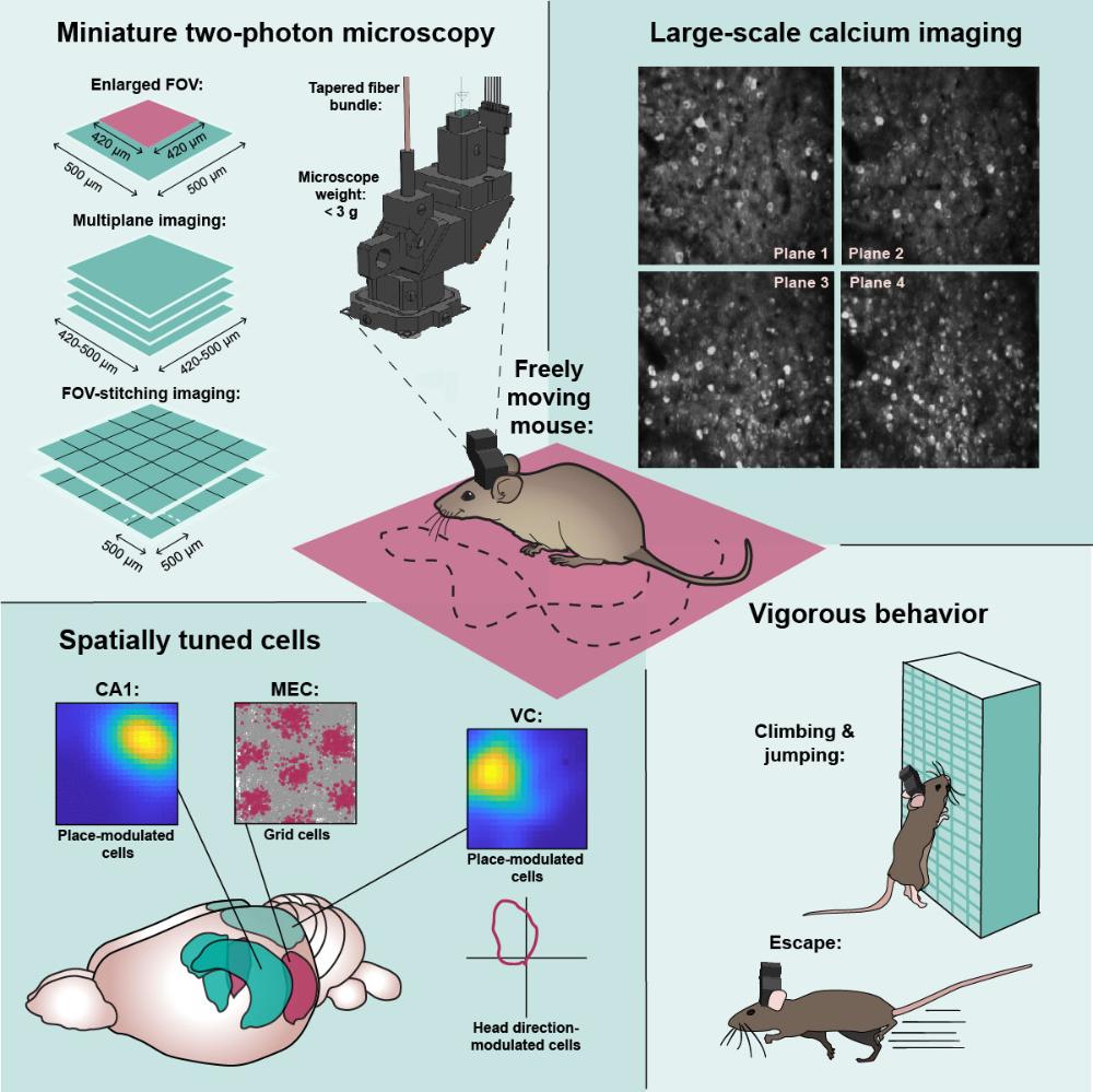 頭戴式微型雙光子顯微鏡MINI2P:記錄小鼠自由移動時大腦內不同深度數千個神經元的活動!
