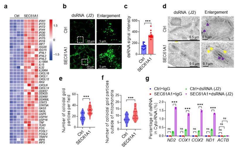 圖1. SEC61A1過表達(dá)通過mt-dsRNA累積激活天然免疫