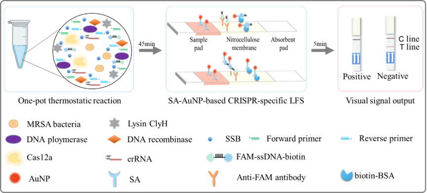 全球每年因細菌感染死亡人數超770萬(《柳葉刀》數據),由金黃色葡萄球菌、大腸桿菌、肺炎鏈球菌、肺炎克雷伯菌和銅綠假單胞菌感染導致的死亡人數占總死亡人數的一半。其中耐甲氧西林金黃色葡萄球菌(methicillin-resistant Staphylococcus aureus, MRSA)因高耐藥性和致病性成為食品安全與臨床診療的“幕后黑手”。傳統檢測需依賴專業設備且耗時長達24小時以上,難以滿足食品污染快速篩查與重癥感染及時診斷的迫切需求。