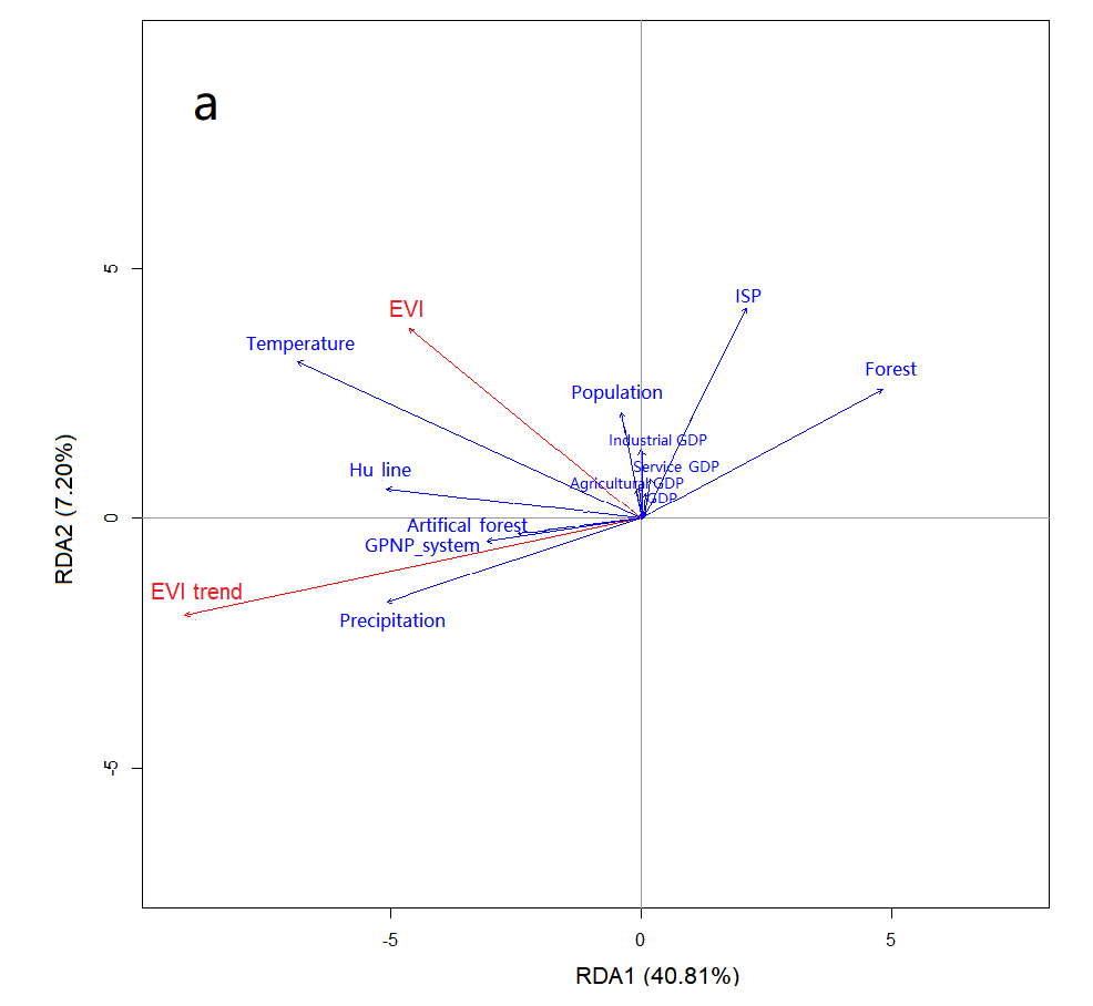 胡煥庸線由中國地理學家胡煥庸于90年前提出,是一條貫穿中國東北至西南的假想分界線。它以人口密度和經濟活動的空間分布為依據,將中國劃分為兩大區域——東部人口稠密,經濟發達;而西部則是地廣人稀,環境條件復雜。大熊貓國家公園地理位置特殊,恰好被這條線在空間上切割為兩部分。研究團隊利用MODIS增強植被指數(EVI)長時序數據(2000–2018年),結合冗余分析(RDA),深入探究了胡煥庸線兩側的植被變化。結果顯示,胡煥庸線在公園內表征顯著的生態阻隔效應。胡煥庸線東南側的植被指數顯著高于西北側(p < 0.01)。這種差異主要源于氣候限制(解釋了32.75%的變異),而非單純的人類活動(人類活動的影響為18.08%)。胡煥庸線兩側截然不同的水熱條件為植被恢復設定了不同的自然上限,管理者不能采用一刀切的生態保護/修復方案來管理整個國家公園。?研究團隊指出大熊貓國家公園的管理必須尊重胡煥庸線的自然地理規律,實施空間差異化的管理策略。?