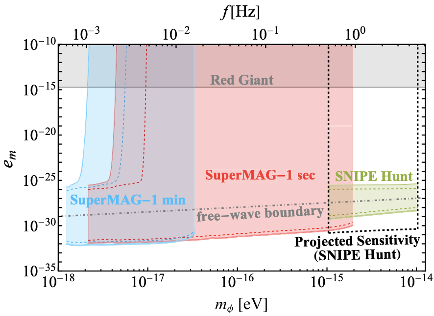 研究團隊利用SuperMAG全球地磁臺網數十年積累的數據,以及SNIPE Hunt合作組在美國多地部署的高精度磁力計測量結果,對微荷暗物質進行了系統分析。結果顯示,該方法對暗物質電荷的限制比以往通過恒星冷卻觀測得到的限制強了13至18個數量級,在極輕質量區間實現了前所未有的探測靈敏度,如圖2所示。
